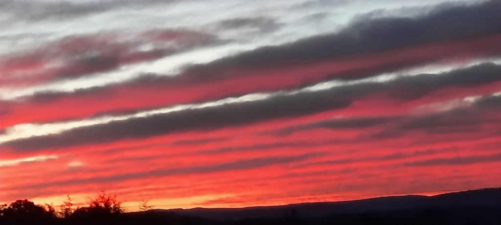 No filter. No editing. Just a simple point and shoot. In fact, this specific pic was taken on my Android phone while I was walking my 70lb doodle, Bonnie. I’ve learned to always have a camera with me as the sun sets to capture God as He designs the sky every night. It becomes a calming reminder for me each evening that no matter how crazy, out of control, maddening, ridiculous, etc., the world seems watching God do something so minute and seemingly mundane as assign colors, swirls, clouds, and/or intensity to a sunset in the midst of all His sovereign work comforts me.
