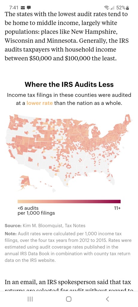 But here’s the prob – joe waited till AFTER his “victory” inflation busting bill passage to execute the raid. Why is that a prob? Well – everyone was processing the fact that there will now be 87,000 NEW IRS agents ALONG WITH higher taxes AND inflation – and in light of who the IRS already audits (middle-class, poor, Republicans ** see maps**)… it’s not a huge leap….